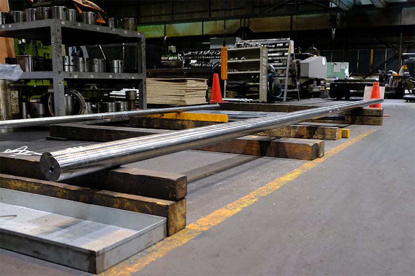 弊社で孔明けされた部品は、鉄鋼関連では 製鉄工場の圧延ロール、産業機械関連では 射出成形機や押出機のシリンダー、スクリューの中心孔、航空機のエンジンや各部品、船舶のプロペラ軸や精密機械のジャーナル軸受けなどに使用されます。